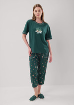 Сорочка молодежная из тканого штапельного полотна с набивным рисунком, свободного покроя, слегка расширенная книзу, на узких бретелях. На полочках – вытачки в области груди. Вырез горловины и проймы окантованы основным материалом. Для регулирования бретелей по длине предусмотрены пластмассовые пряжки и кольца – держатели, устанавливаемые на бретелях.