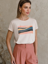 Совместные покупки Симферополь Женская одежда Футболки — Акция Vilatte Футболка из эластичного хлопка с принтом стразы D49.097 бежевый_s