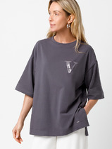 Совместные покупки Симферополь Женская одежда Футболки — Акция Vilatte Футболка из премиального хлопка с принтом фольгой D49.098 черный_