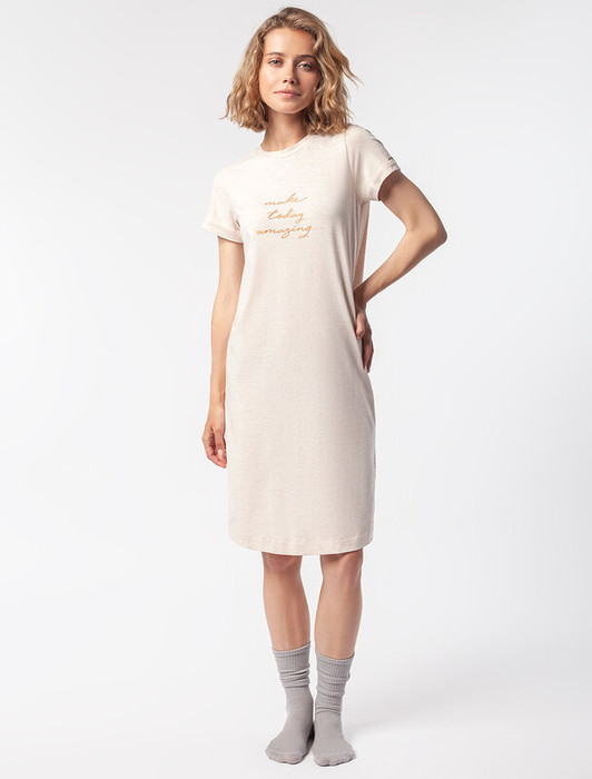 Домашнее платье выполнено из премиального хлопка с авторским принтом. Weekend vibes - настрой на выходные. Изделие приятно ощущается на теле, а разрезы по бокам обеспечивают удобную посадку не сковывая движений. Наличие эластана в составе изделия способствует формоустойчивости и меньшей сминаемости.