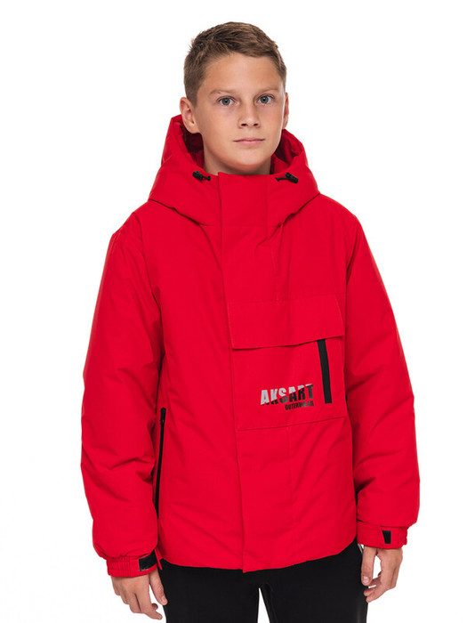 Однотонная стильная куртка для мальчиков. Ткань с отделкой рип-стоп. Подкладка трикотаж-интерлок (хлопок 100%). Вся фурнитура лаконичного черного цвета. Фронтальная молния под широкой ветрозащитной планкой. Планка фиксируется кнопками. Оригинальный нагрудный накладной карман куртки выполнен с заходом на ветрозащитную планку, что создает иллюзию ассиметричной фронтальной застежки. Вход в карман закрыт клапаном. На этом кармане дополнительно выполнен прорезной карман с молнией. На молниях и боковые карманы куртки. Манжеты рукавов обработаны эластичной тесьмой и патами с лентой-«велькро». Несъемный капюшон. Регулировка лицевой части капюшона и низа куртки выполнена с помощью кулисы со шнуром-резинкой и фиксаторами. На накладном кармане и правом рукаве куртки светоотражающий термопринт, в боковом шве светоотражающий флажок.Характеристики:Ткань верха: курточная с отделкой Rip stop WR PUПодклад: хл / п/эУтеплитель: слайтекс 100 г/кв.м