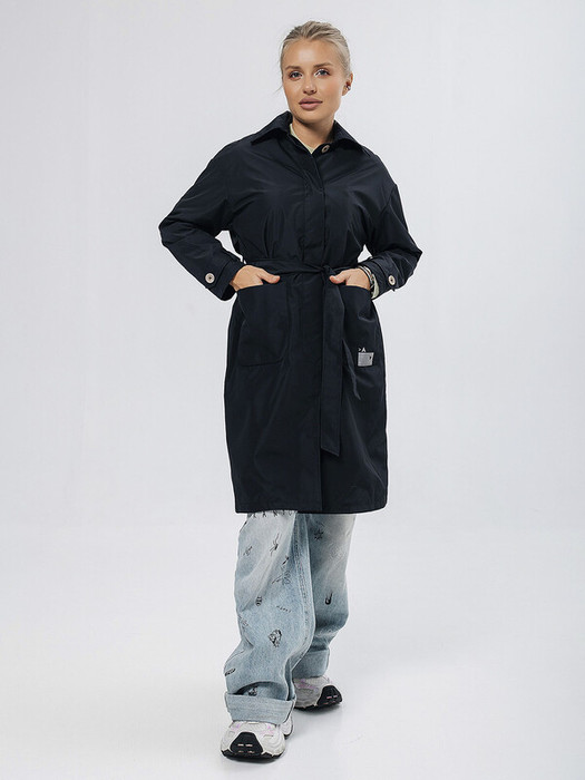 Комфортный тренч свободного, прямого силуэта. Отложной воротник, большие накладные карманы. Внутренний карман на потайной молнии. Спинка дополнена отлетной кокеткой. Супатная застежка на пуговицы. В нижней части рукавов регулируемые паты.  На левом кармане светоотражающий термопринт. В боковом шве — светоотражающий флажок. Дополняет силуэт пояс по линии талии.Характеристики:Ткань верха: Liverpool WR membraneПодклад: полиэстер