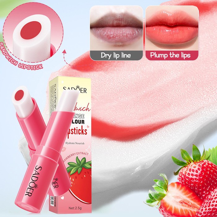 Совместные покупки Симферополь Косметика и парфюмерия Прочий макияж — Бальзам для губ с Клубникой 2 в 1 "Увлажнение + Оттенок" Sadoer, 2,5 гр.