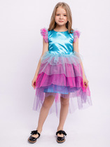Нарядное платье с пышной юбкой и рюшами из фатина, с декоративным бантом на поясе сзади. На спинке имеется поясок чтобы дополнительно утянуть талию. Подкладка 100% хлопок.