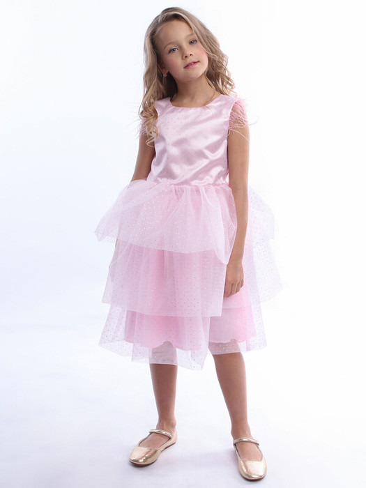 Нарядное пышное платье розового цвета с перьями на рукавах. Удобное и невероятно красивое платье для утренников и фотосессий. Трехслойная пышная юбка из фатина длиной до колена. Платье выполнено в минималистичном стиле и при этом смотрится празднично. Станет прекрасным дополнением детского праздничного гардероба. На любой вечеринке ваша модница будет в центре внимания.Характеристики:Размеры (рост): 98-134Ткань верха: Сатин - Полиэстер Сетка - ПолиэстерПодкладка 100% хлопокПроизводитель: batik