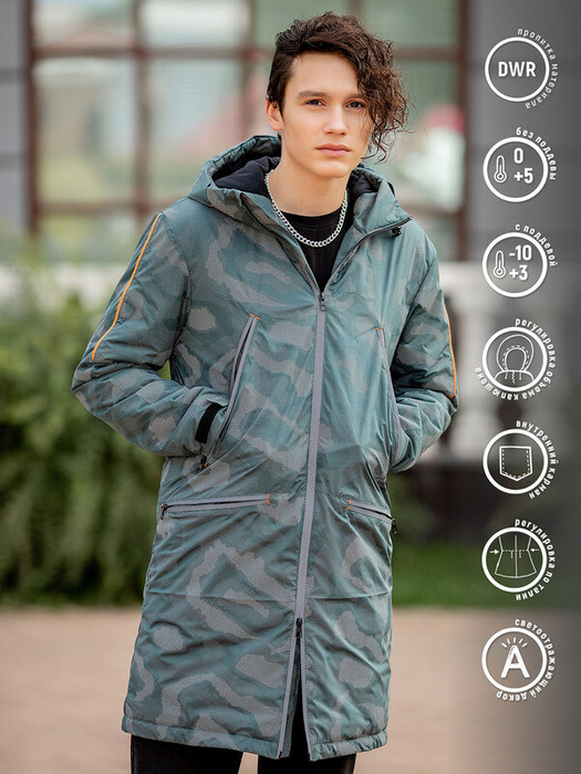 Парка для мальчика Хит демисезонная в темно-зеленом цвете. Утепленная удлиненная парка из оригинальной ткани со светоотражающей структурой для подростков сшита из прочной водонепроницаемой ткани, хорошо защищающей от ветра и холода. Высокотехнологичный наполнитель - слайтекс, лёгкий, гипоаллергенный и износоустойчивый материал, который хорошо сохраняет тепло.  Особенности:  Регулируемый капюшонВнутренний карманБольшие карманы с увеличенным входом на груди и по бокамКонтрастная отделка в виде усиленных закрепокСветоотражающие элементы и термотрансферыРегулировка по талииЗастежка на водонепроницаемую молнию Характеристики:Ткань верха: Курточная ткань с водоотталкивающим покрытием Подклад: поли брушедУтеплитель: 100 слайтекс Температурный режим от +10 до -5 СПроизводитель: batik