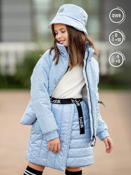 Юбка для девочки Бель утепленная из ткани с метализированным эффектом голубая. Утепленная юбка на подкладке выполнена из приятного на ощупь ветронепроницаемого материала, застегивается на кнопки. Юбка для девочки прямого покроя из курточной ткани без карманов. Особенности: Эластичный поясЗастёжка на кнопкиСтеганная ткань Характеристики:Ткань верха: Курточная ткань с метализированным эффектомПодклад: полиэстер Утеплитель: 60 грТемпературный режим от +10 до -5СПроизводитель: batik