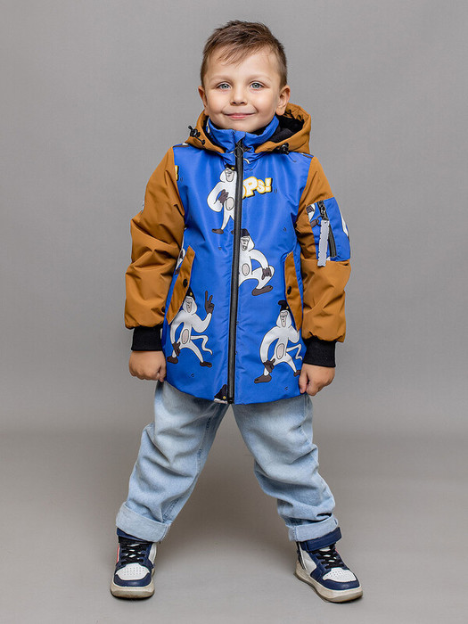 Яркая куртка-бомбер Марек для стильных мальчишек защитит вашего ребенка от непогоды. Регулировка объема капюшона, трикотажные манжеты и резинка по низу куртки уберегут от ветра и холода, а мембрана с водоотталкивающим покрытием от дождя и грязи. Спереди прорезные карманы и дополнительный на рукаве. Яркий принт и светоотражающие элементы создают неповторимый образ. Особенности: Пропитка материала DWR Регулировка объёма капюшона Съемный капюшон Регулировка по низу куртки Светоотражающие элементы  Характеристики:Ткань верха: мембрана Подклад: трикотаж хлопокУтеплитель: 100 гр/м2Температурный режим от +5°С до -10°СПроизводитель: batik