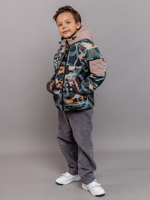 Куртка для мальчика Говард с принтом милитари выполнена из мембраны. Объёмная куртка со спущенной линией проймы. В локтевой шов заложена вытачка, повторяющая изгиб руки для комфорта движения. На капюшоне, по талии и низу куртки регулировки объема. Светоотражающие элементы: кант в капюшоне, локтевых швах рукавов, нашивки на капюшоне и правой полочке, патч и навес на молниях. Особенности: Пропитка материала DWRРегулировка объёма капюшонаРегулировка по низу курткиСветоотражающие элементыМанжеты на резинке на рукавахПрорезные карманы на молнии по бокам и на рукаве Характеристики:Ткань верха: мембрана Подклад: х/бУтеплитель: 120 гр/м2Температурный режим от +5°С до -10°СПроизводитель: batik