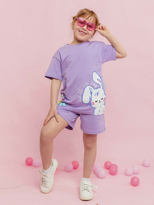Футболка для девочки сиреневая с коротким рукавом из супрема пенье. Создана из натурального хлопка с небольшим добавлением эластана. Круглая горловина, крупный принт в виде зайчонка. Продуманный крой рассчитан на девочек разной комплекции.Характеристики:Ткань: Супрем пенье 92% хлопок 8% эластанПроизводитель: batik