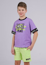 Футболка с коротким рукавом для мальчика трикотажная из супрема пенье. Удобная футболка – неотъемлемая часть детского гардероба, а данная модель подойдет не только для повседневной носки, но и активного отдыха и занятий спортом. Круглая горловина, оригинальный принт на груди.Характеристики:Ткань: Супрем пенье 92% хлопок 8% эластанПроизводитель: batik