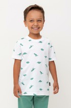 Футболка с коротким рукавом для мальчика из натурального хлопка. Стильная расцветка хаки и принт. Классический круглый вырез – удобная посадка, не натирает шею. Футболка идеальна для садика, прогулок и активных игр. Легко комбинируется с любой детской одеждой: брюками, шортами, джинсами.Характеристики:Ткань: 100% хлопокПроизводитель: batik