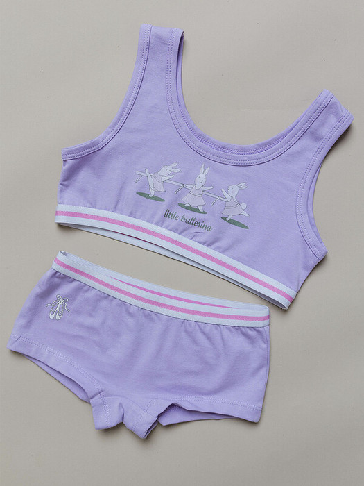 Комплект нижнего белья для девочки сиреневый: майка-топ + трусы. Комплект для девочек, состоящий из трусиков и майки, станет незаменимым элементом в детском гардеробе. Включающий в себя сразу два изделия, этот набор идеально подходит для повседневного использования. Комплект подходит для спортивных занятий.Характеристики:Материал: Супрем пенье 92% хлопок 8% эластанПроизводитель: batik