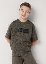 Особенности:Зеленый цвет и принт камуфляжПрямой кройКруглая горловинаХарактеристики:Материал: супрем (100% хлопок)Размеры: 110-164Производитель: batik