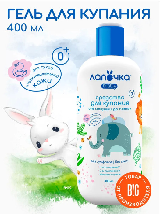 Детское средство для купания Лапочка предназначено для купания детей с рождения. Не раздражает глаза, не содержит мыла.
