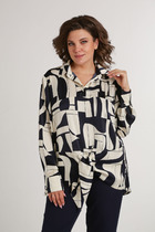 Блузка из сатиновой ткани очень лёгкая и в тоже время не просвечивается. Втачной рукав по низу манжета с пуговицей, она подворачивается(по желанию).Воротник мужской на стойке.По переду планка на одну пуговицу, с низу блузка завязывается на узел. Спинка свободного силуэта полукруглая,немного длиннее переда.