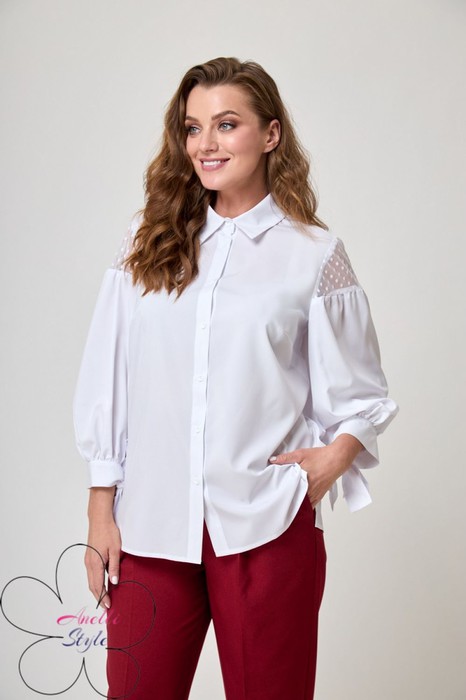 Блузка с вставками по рукаву. Выполнена из хлопкового полотна белого цвета.