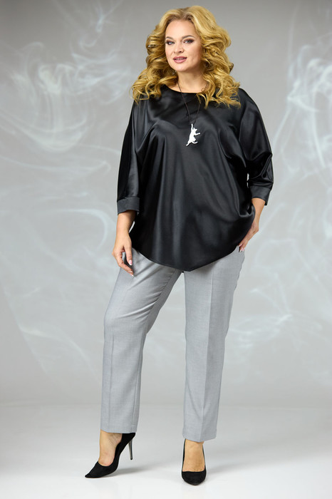 Элегантная женская блузка. . Блуза свободного силуэта в стиле "бохо" из стильной атласной ткани. Горловина блузы обработана обтачкой, для удобства на спинке в горловине расположена застежка в виде капельки на петлю пуговицу. Рукав цельнокроеный с манжетой.  Длина блузы 75 см, длина рукава 3/4. Модель подойдет на рост 164-170 см