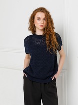 Vilatte Блузка свободного силуэта с золотистыми пуговицами D29.274 черный-белый