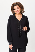 Блузка женская прямого силуэта, с центральной застежкой по переду на петли и пуговицы. По горловине переда-легкая сборка, воротник стойка, переходящая в бант.