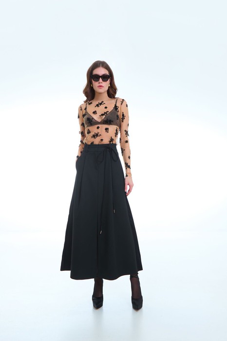 Блузка женская  прямого силуэта из трикотажного полотна сетка, с длинными рукавами. Низ изделия и рукавов не обработаны. Горловина окантована эластичной тесьмой.