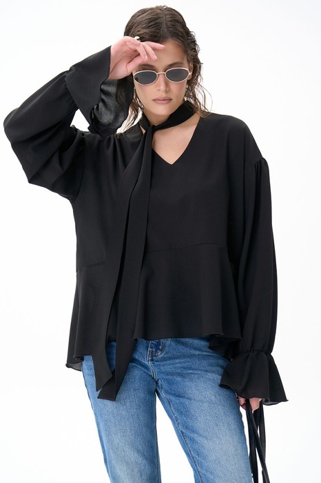 Акцентный воротник-лента — оружие, усиливающее образ. Он заменяет любые украшения и делает блузу главным элементом вашего стиля. В чёрном цвете он выглядит максимально дерзко: каждый изгиб, каждый штрих подчёркивает вашу женственность и власть.