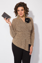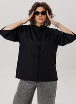 Блузка свободного силуэта в стиле бохо. Перед с нагрудными вытачками. Вдоль горловины, вдоль борта с переходом на спинку двойные рюши. Блузка спереди на завязках. Рукав втачной одношовный. Низ рукава с притачной рюшей и завязками. Длина блузки- 58 см, длина рукава блузки - 62 см.