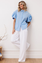 14.04 Vilatte Укороченная блузка с рукавами буфами и с кулиской по низу из эласт