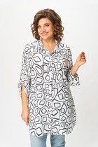 Блузка прямого силуэта из хлопковой ткани с фигурным низом. Воротник –стойка, по центру застежка на кнопки. Рукав спущенный с заниженной проймой, по низу рукава сборка и декоративная манжета. По переду декоративная кулиса с фиксаторами для регулирования степени прилегания изделия. На спинке кокетка и сборка по центру. Обращаем ваше внимание, что фурнитура может отличаться от фото.