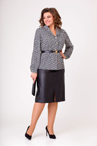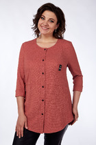 Женская блузка свободного силуэта с втачным рукавом. По переду  изделия  нагрудные вытачки и центральная  планка, застегивающаяся на пуговицы. На левой  полочке накладной карман. Спинка с кокеткой переходящей на полочку. По центру спинки сборка. Рукав короткий, прямой, втачной с патой на застежку пуговицу. По горловине плоско лежащий воротник-стойка. Низ блузки на резинке.