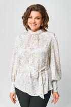 Блузка свободного кроя с цельнокроеным рукавом, воротник со стойкой. Рукав длинной ниже локтя с  широкой манжетой  на застежку  петли - пуговицы. Спинка блузки  стачная по среднему шву с обработанным разрезом на застежку пуговицу.  Низ  собран  на эластичную ленту.