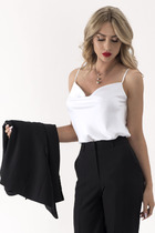 Блуза из полоски незаменима в этом сезоне как никогда. Перед блузы – с бочком по косой и нагрудной вытачкой, выходящей из него, карман накладной с поперечной полоской, горловина – круглая. По центру переда - функциональная застежка на 6 пуговиц и 6 пробивных петель. Спинка без среднего шва, рукав 3\4, двухшовный с манжетой по косой. Низ блузы спереди и сзади закругленный. Эта простая модель поистине универсальна и подходит как для повседневной носки, офиса, так и для различных мероприятий.