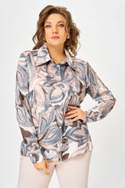 Блузка женская относится к нарядной торжественной одежде. Блузка полуприлегающего силуэта, отрезная по линии талии. Центральная часть переда из отделочной ткани, с двумя рельефами, выходящими из плечевых швов. Спинка с двумя талиевыми вытачками. горловина круглая, обтачная, без воротника. Застежка на потайную тесьму-молнию в левом боковом шве. Рукав короткий, втачной, одношовный. Блузка с плечевыми накладками. Длина спинки 60.5 см. Длина рукава 21 см