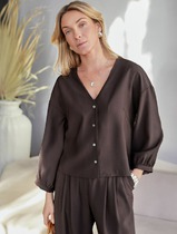 22.03 Vilatte Укороченная блузка с V вырезом из плотного лиоцелла D29.356 кофей