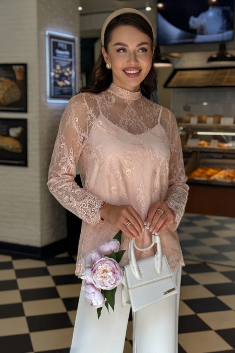 Эта нарядная женская блузка из нежного гипюра — идеальное решение для торжественного образа. Комплект женский 2-х предметный, состоящий из блузы и топа, предназначен как для нарядной, так и для повседневной носки.