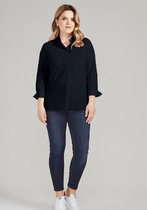 Касательно длины изделия, она может варьироваться в зависимости от размера. Для размеров 44, 46 и 48 длина блузки составляет 61 см. Для размеров 50, 52 и 54 - 62 см. А для размеров 56, 58 и 60 - 63,5 см. Длина рукава составляет 63 см.