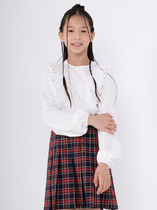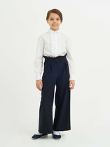 Трикотажный блуза из линейки VAY KIDS школа. Отложной воротничок, застежка на пуговицы с ажурной отделкой.