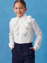 Блузка выполнена из интерлок в классическом стиле.Комбинации с шитьем делают блузку нарядной.Рекомендована для школы.