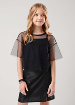 Нарядный джемпер и из высококачественного трикотажа качества пенье. Блузка с коротким рукавом-фонарик, выполнен из кружева (дизайн кружева может быть изменен производителем не в ущерб качеству). По низу блузка собрана на пояс образуя напуск. На полочке по центру внутренняя декоративная складка, украшена бархатной тесьмой . По низу Воротник отложной на застежки сзади. Данная модель отличное решение для торжественного случая.