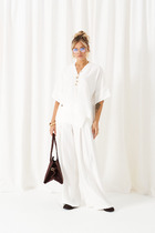 Состав: 55%Вис 45%Лиоцелл (Вис) Плотность: 115 Г/м2Блузка кофейного цвета сочетает в себе комфорт и элегантность благодаря материалу из вискозы с лиоцеллом. Аккуратный отложной воротник подчеркивает утонченность образа, а широкие короткие рукава привлекают внимание и делают силуэт современным. Спущенная линия плеча формирует расслабленный, но стильный внешний вид, что идеально для тех, кто ценит индивидуальность и уверенность в деталях. Крой продуман так, чтобы подчеркивать достоинства фигуры и на больших размерах, создавая гармоничный силуэт без лишних усилий. Ткань из вискозы с добавлением лиоцелла обеспечивает приятные ощущения и отличную посадку, струится на теле и охлаждает в жаркую погоду. При пошиве использована технология «чистый край» по всей длине центральной планки и низу изделия. Это признак премиум качества — «чистый край» вместо оверлока. Блузку можно носить с топом, не застегивая — при этом распахнутая блузка будет выглядеть максимально эстетично. Рубашка легко впишется как в деловой гардероб, так и в повседневный стиль, позволяя выглядеть безупречно независимо от ситуации.