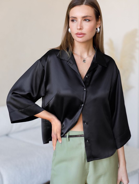 Блузка с короткими рукавами из плотного струящегося сатина