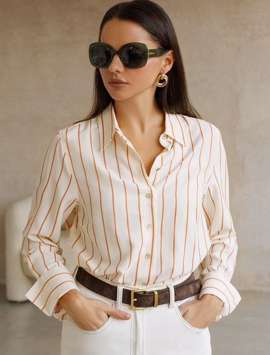 Совместные покупки Симферополь Женская одежда Костюмы, комплекты — Блузка свободного силуэта в тонкую полоску из эластичного хлопка
