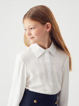 Блузка из трикотажного полотна ,с округлым вырезом и воланами. Нарядные и строгие блузки-могут сделать наряд школьницы привлекательным и элегантным.Блузки помогают создавать неповторимые образы,они хорошо смотрятся в сочетании с сарафанами,юбками и брюками.