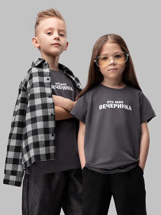 Совместные покупки Симферополь Детская одежда Футболки, майки — Bodo Футболка "Это моя вечеринка" 4-220MU темно-серый