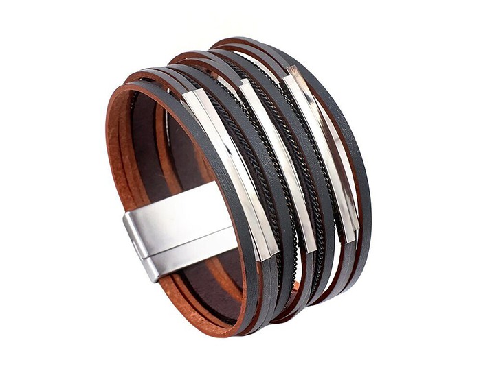 Браслет из кожи и стали, ALBW129