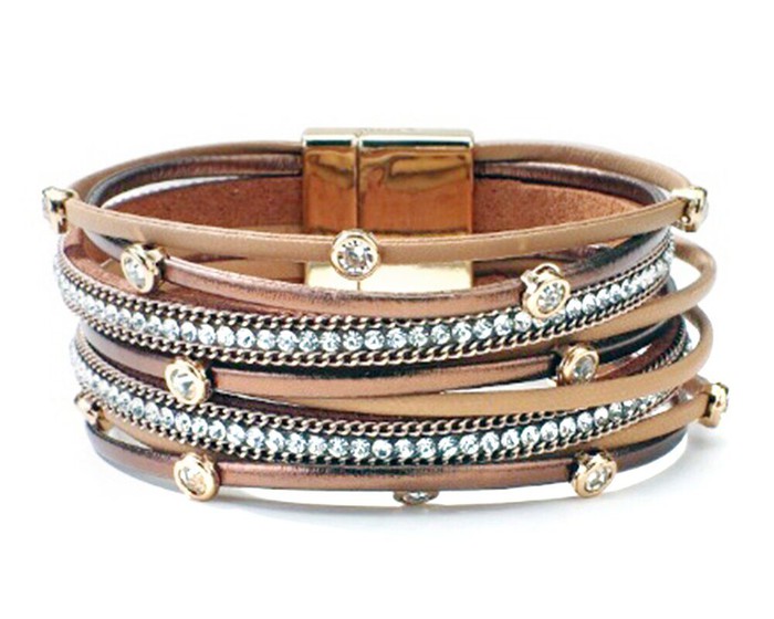 Браслет, арт.642535 Бижутерия 0, 0 гр., кожа , сталь , стекло