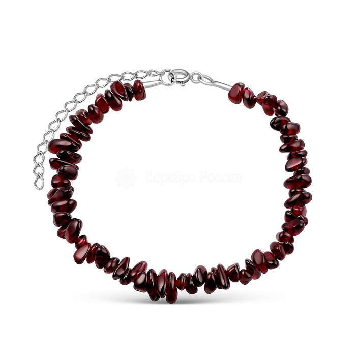 Браслет из натурального граната (замок с удлинителем из родированного серебра)
