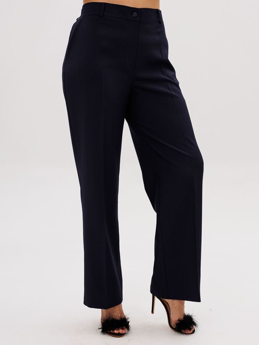 Эти классические брюки созданы для тех, кто ценит безупречный крой и комфорт. Высокая посадка деликатно поддерживает фигуру, а прямой крой со стрелками визуально вытягивает силуэт, делая его стройнее. Модель брюк универсальная, подойдёт также и обладательницам пышных бедер.
