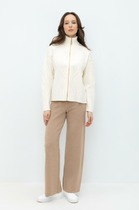 Брюки немного расширенные к низу, на притачном, отстроченном поясе на резинке, с карманами в боковых швах. Вверху по переду имитация застежки-гульфик.