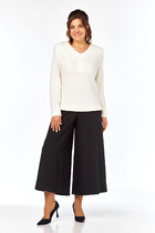 Брюки выполнены из джинса с отделкой из гипюра. Брюки прямого покроя, длиной в пол, на притачном поясе. Верхняя часть брюк выполнена из джинса, нижняя часть из гипюра. Спереди боковые карманы с фигурным входом и застежка на молнию. На задних частях кокетки и накладные карманы. Пояс застегивается на пробивную пуговицу.